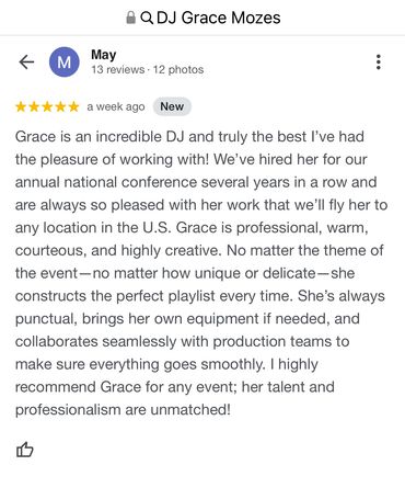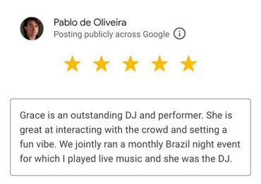 DJ Grace Mozes's career has been focused on creating the most meaningful connection she can for her audiences. Her gigs range from intimate weddings and celebrations to enormous public and private events. Her wedding, bar and bat mitzvah, and community event clients celebrate her ability to get and keep the crowd dancing with carefully curated and ever-responsive sets. But she is equally skillful at getting thousands and thousands dancing in the streets, such as her annual gigs at NYC's Pride Parade. She brings the same talents to her large corporate and conference events. She has opened for the legendary Israeli band Kaveret and an American President. She DJed alongside Noa Kirel on a float at NYC's Pride Parade. She has also worked with various Brazilian artists at musical events and venues.